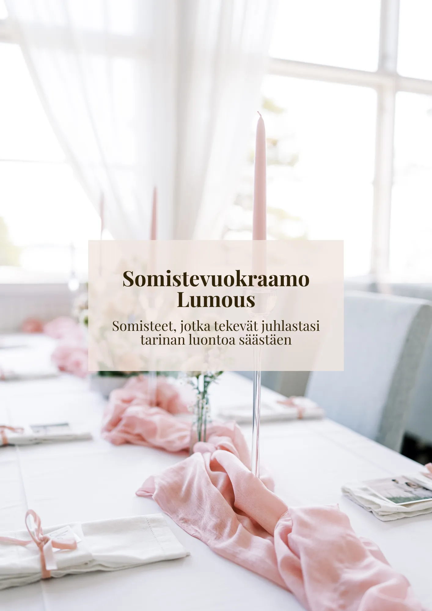 SaaraTampereSaatiin Lumouksesta erinomaista palvelua, upeat koristeet sekä hinnastokin on kilpailukykyinen. Tavaroiden haku ja nouto sujui ongelmitta ja joustavasti sekä yhteydenpito oli helppoa. Saatiin sellaiset hääkoristeet kun haaveiltiinkin!